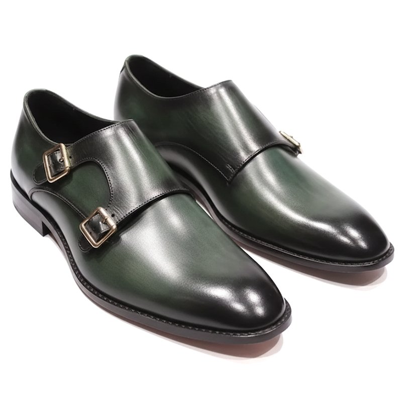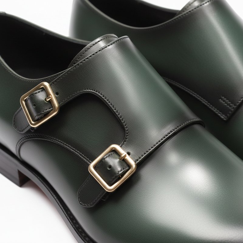 Handcrafted from 100% premium leather, the Adeline shoes feature a sleek double monk strap closure — a bespoke style known for its blend of tradition and modern flair. The rich patina is achieved through a hand-finished dyeing process, ensuring depth of tone and a one-of-a-kind finish that only gets better with age. With its clean silhouette, elegant strap buckles, and slightly squared toe, this shoe embodies understated confidence and class.