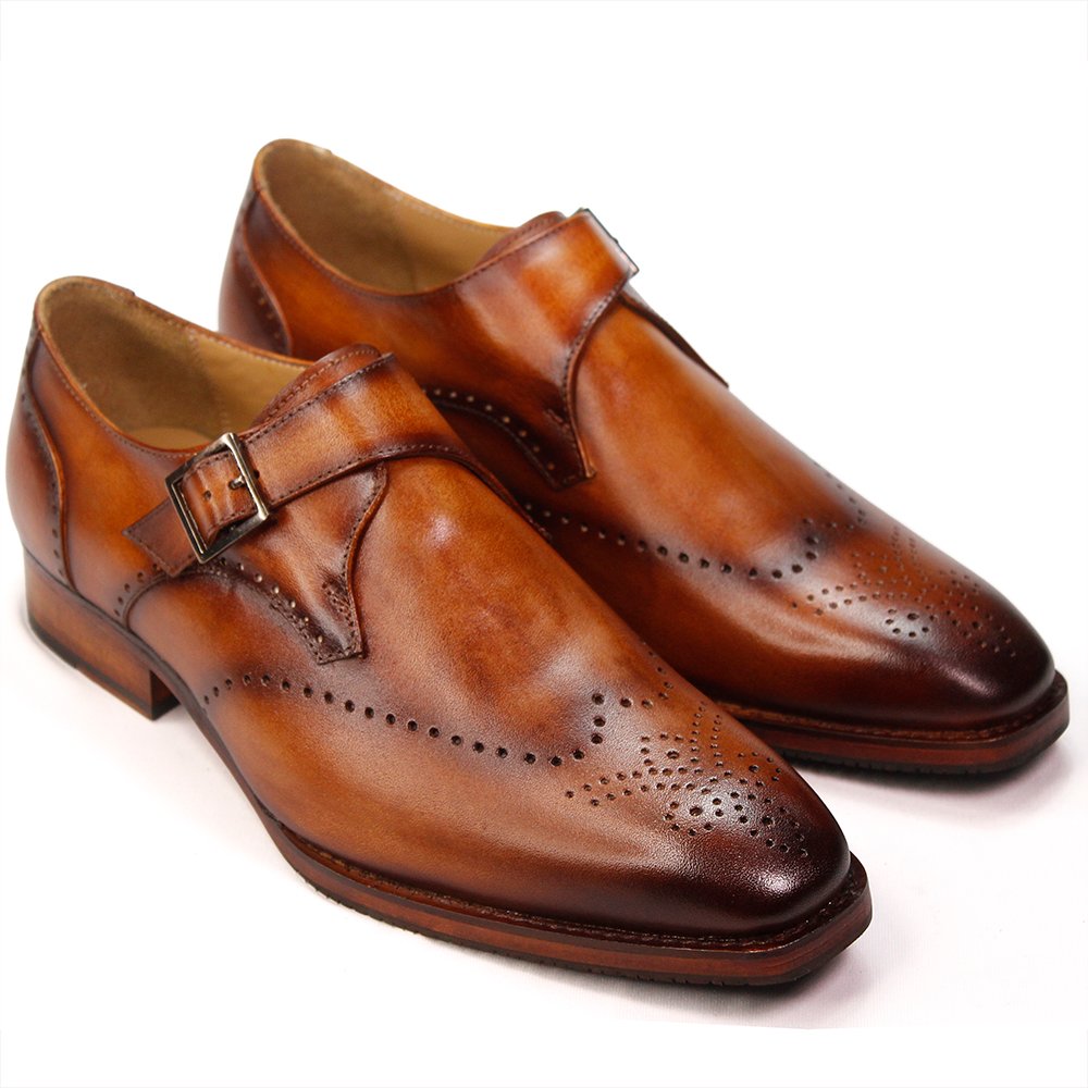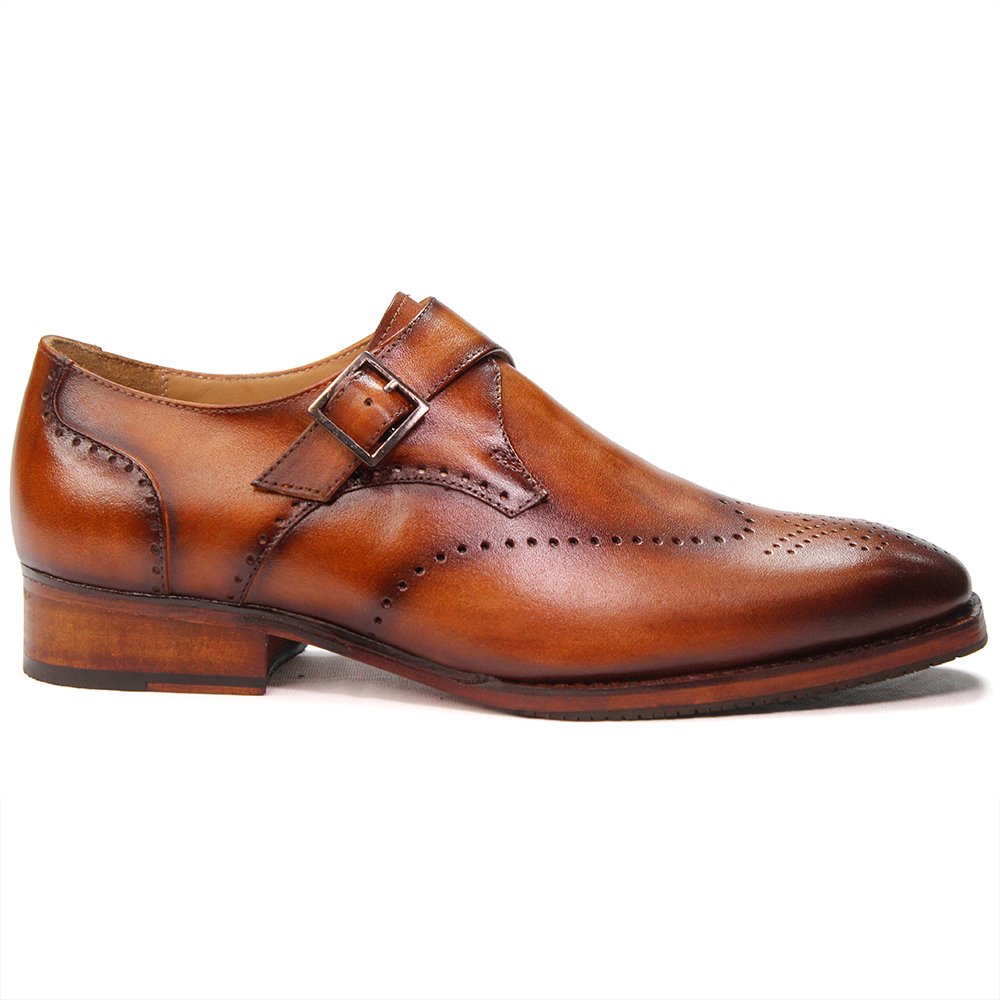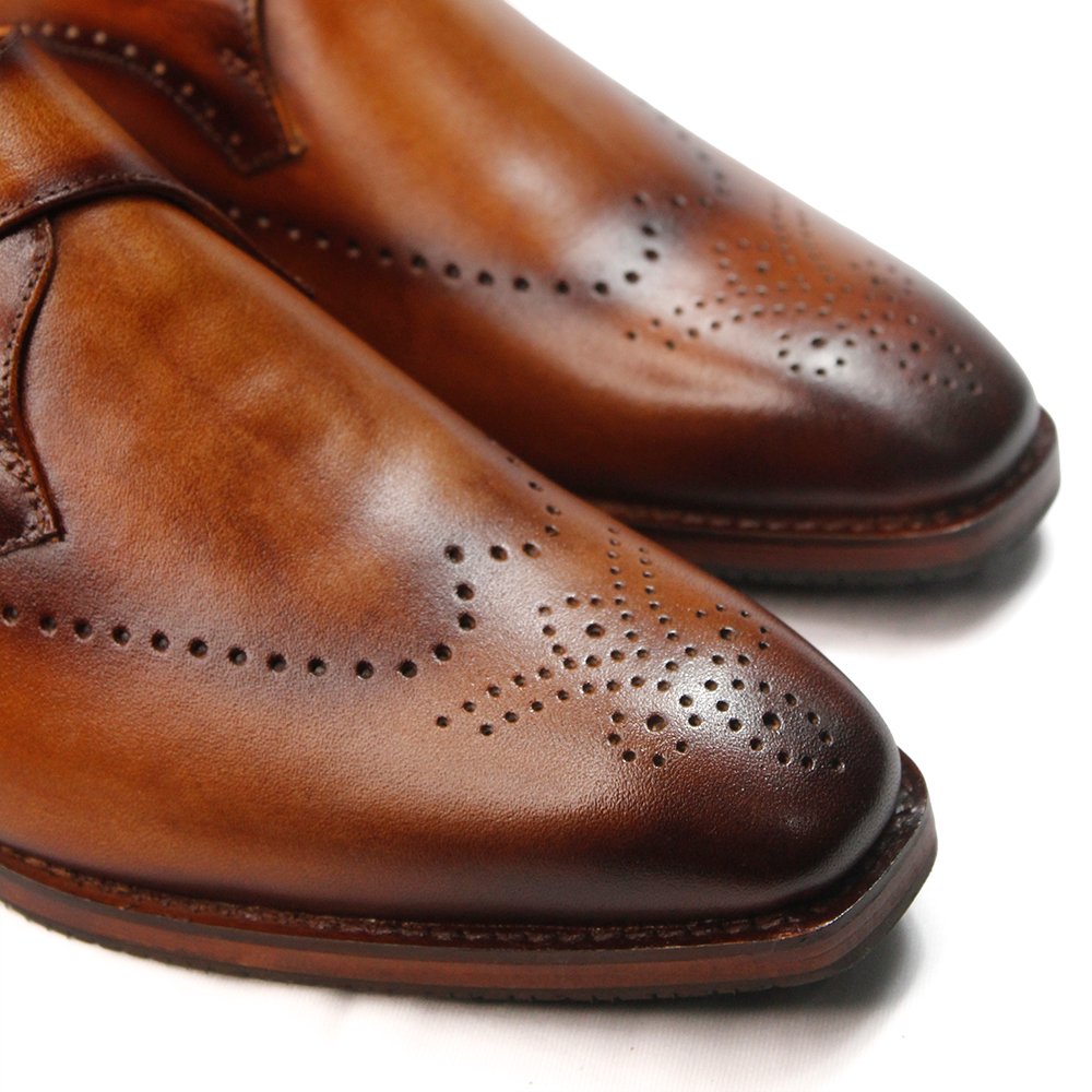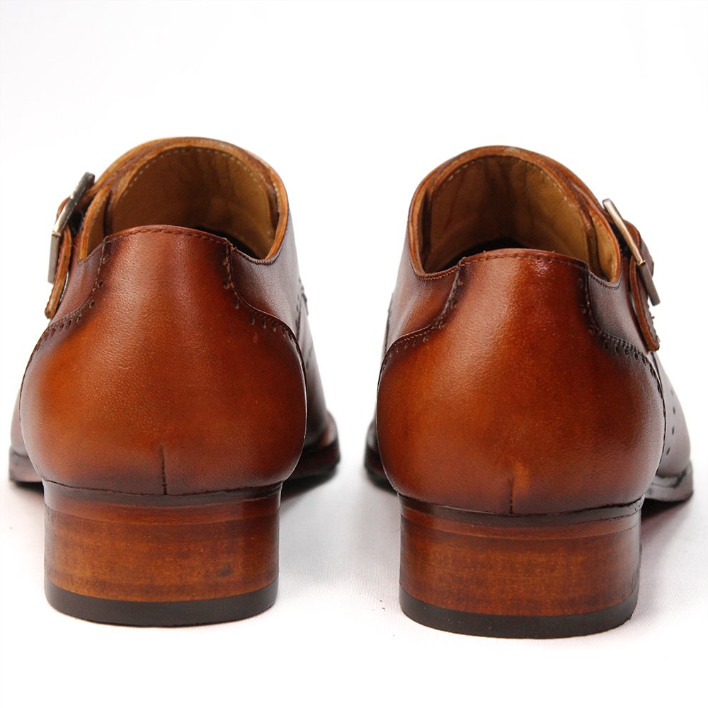 Cognac Crest Monk Strap - Shoe Bespoke’s “Cognac Crest” Monk Strap Brogues are a refined blend of heritage craftsmanship and modern elegance. These pure leather customized shoes are handcrafted from premium full-grain leather, featuring a rich cognac gradient that deepens at the toe and heel for a burnished, dimensional finish. The single monk strap, secured with an antiqued brass buckle, adds a distinctive touch of sophistication.