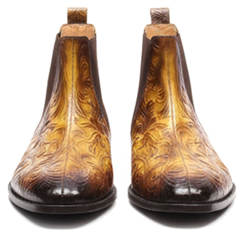 Duned Floral Chelsea -Shoebespoke—a standout piece for the modern gentleman who appreciates flair and fine craftsmanship. These boots bring a daring twist to the classic Chelsea silhouette by incorporating a unique floral pattern that commands attention without compromising on elegance.