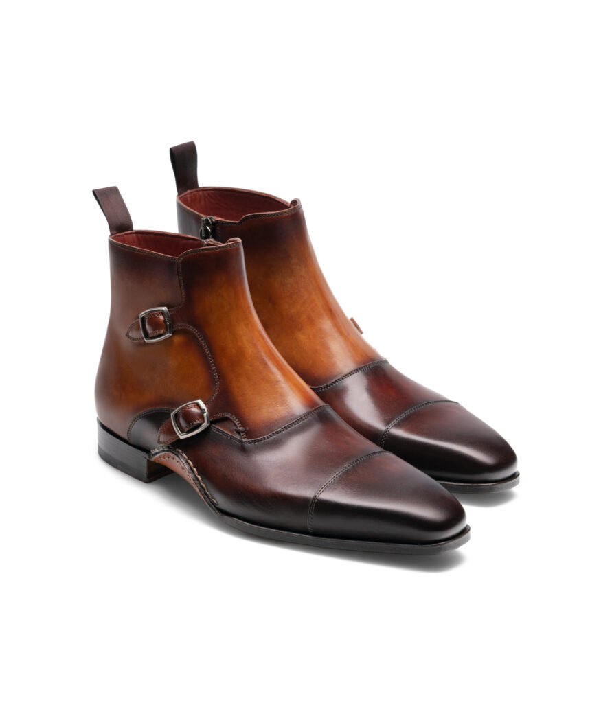 Elevate your wardrobe with the EXCLUSIVE Tronos Midbrown and Cuero Monk Boot Shoes, a bold reinterpretation of classic sophistication fused with modern design elements. Meticulously handcrafted by Shoebespoke, these boots are a masterclass in dual-tone leather artistry, designed for the contemporary gentleman who values timeless elegance and exceptional quality.