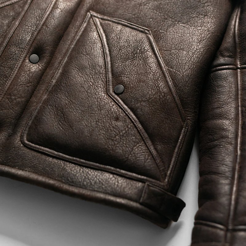 Heritage Brown Shearling Leather Jacket by Mitch Luxury is a refined expression of timeless craftsmanship and rugged sophistication. Expertly handmade from 100% pure leather, this men’s jacket features a rich deep brown tone that enhances its vintage-inspired character.