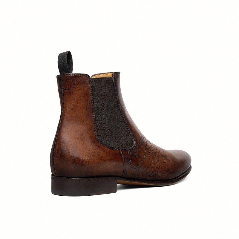 Designed for comfort and durability, the boot comes with a high-quality leather sole, ensuring a smooth stride and long-lasting performance. The sleek silhouette combined with subtle artistic detailing makes it perfect for both formal and smart casual styling.