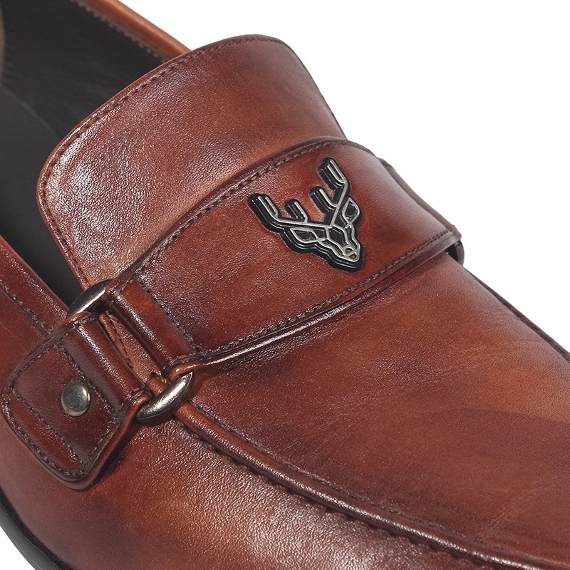 Mitch Duke is a handcrafted tan brown leather loafer by Shoe Bespoke, made from premium calf leather and finished with a refined metal accent. Designed with a leather sole and a bespoke silhouette, it offers timeless elegance with modern sophistication.