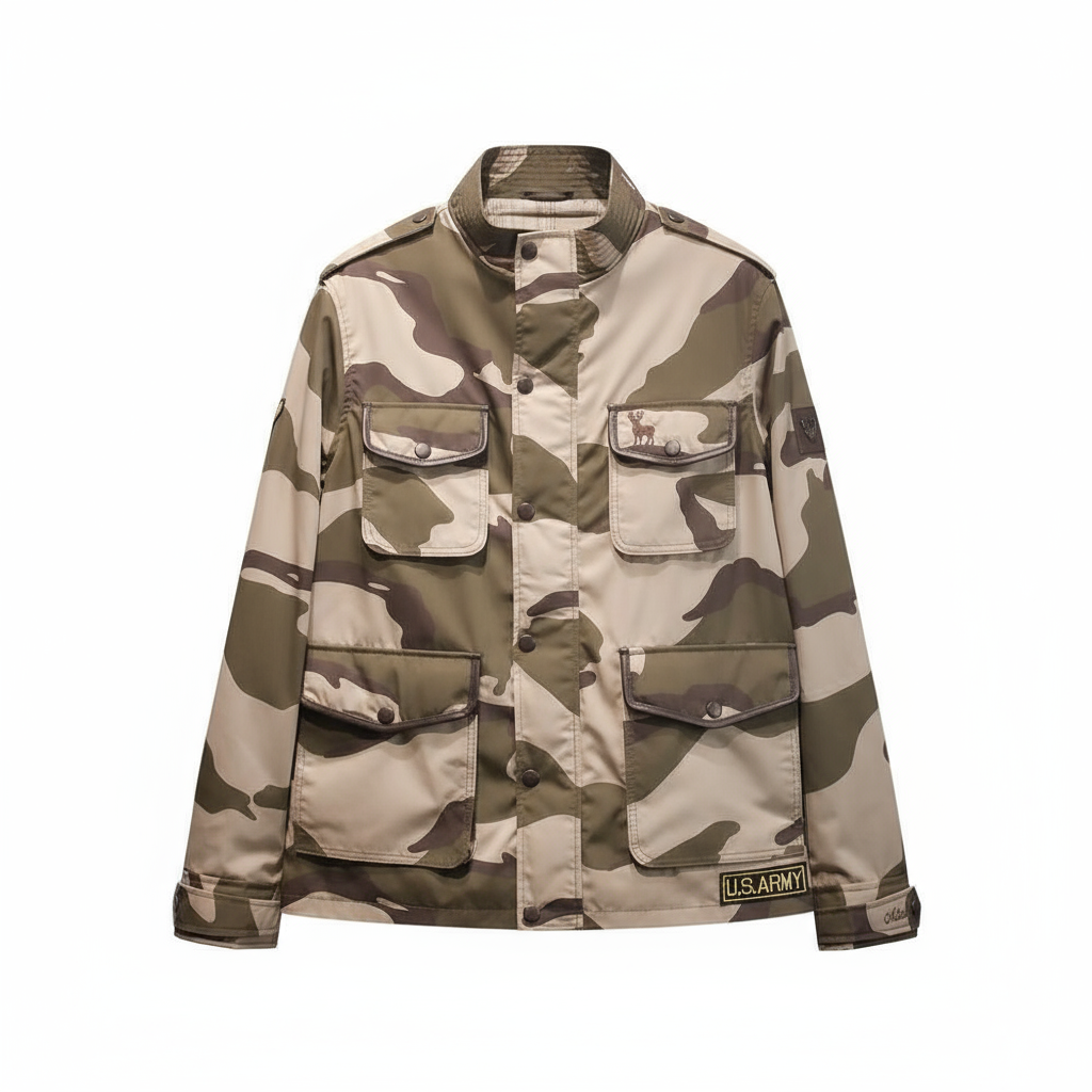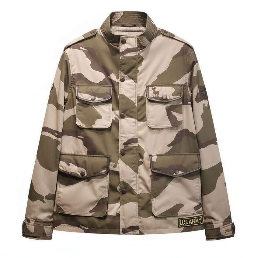 Custom-designed camo jacket by MITCH Luxury. Military-inspired style, handcrafted for bold individuality.