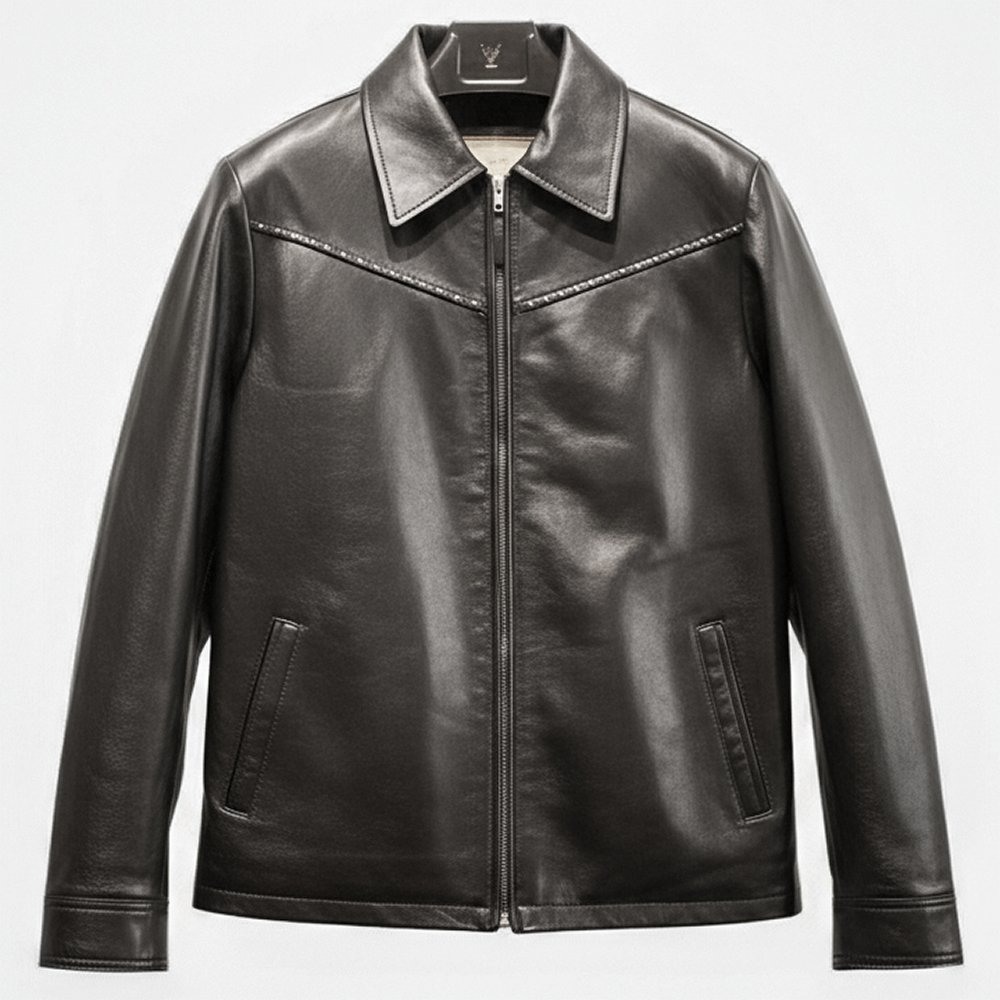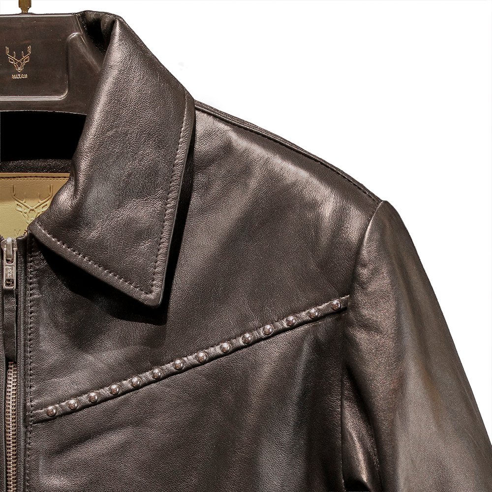 The Onyx Studded Jacket by Mitch Luxury, crafted in premium leather with bespoke tailoring and studded detailing, offers timeless elegance and personalized luxury.