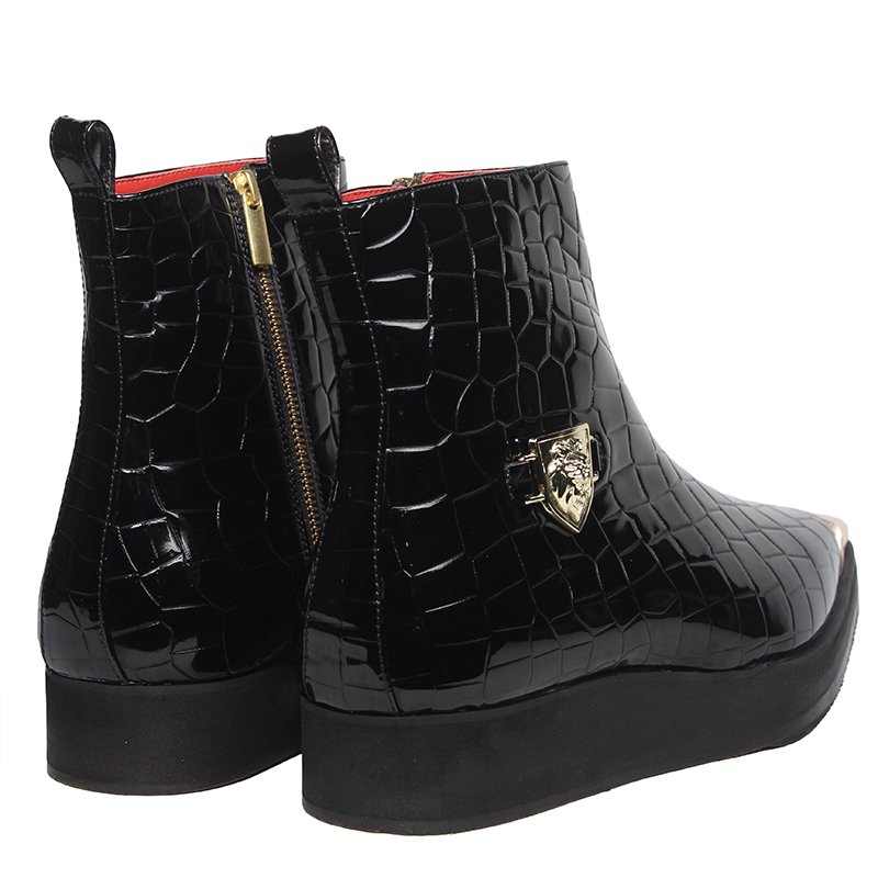 Elegant croc-texture detailing enhances the luxury appeal of the boot.