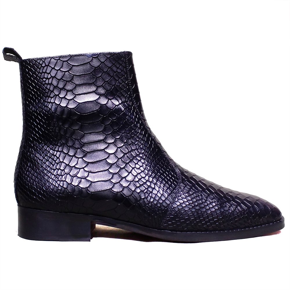 One of the defining features of the Obsidian Python boots is the signature red-bottom wood sole, handcrafted to perfection. This bold splash of color not only enhances the overall aesthetic but also symbolizes luxury and exclusivity. The wooden sole ensures durability and comfort, allowing you to walk confidently all day and night. The smooth side zipper closure offers a modern twist on the classic Chelsea boot design, making these boots easy to slip on while maintaining a streamlined silhouette.