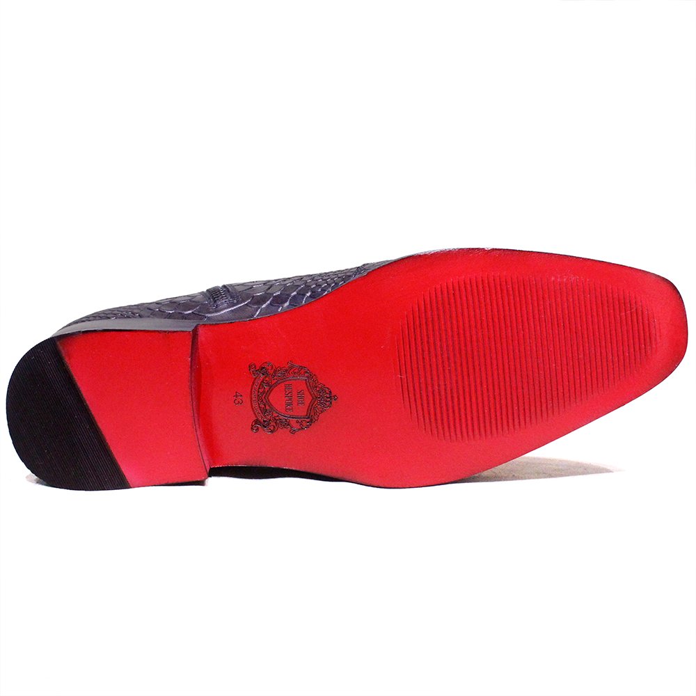 Elevate your footwear collection with the Obsidian Python Red Bottom Chelsea Boots by Shoebespoke — where luxury meets bold, bespoke craftsmanship.