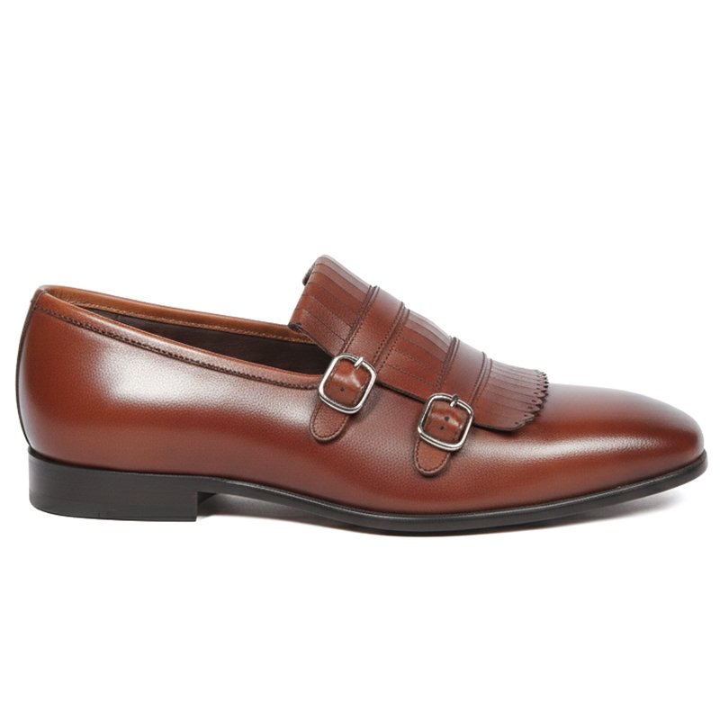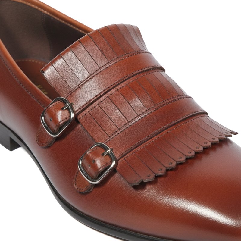 Regent Double Monk is meticulously handcrafted by skilled artisans at ShoeBespoke, using 100% genuine calf leather known for its smooth finish, durability, and ability to age beautifully. The rich brown tone and elegant monk-strap design with refined fringe detailing create a distinguished look suited for both formal and smart-casual wear.