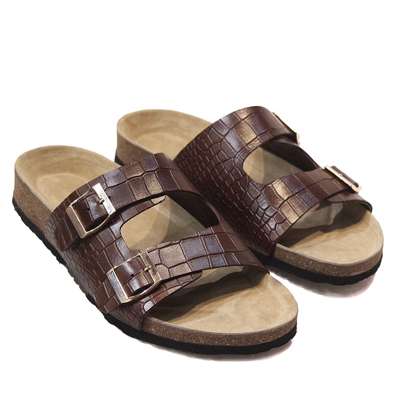 Shoe Bespoke handmade pure leather cork sole slipper with croc texture and rubber sole for daily comfort wear.