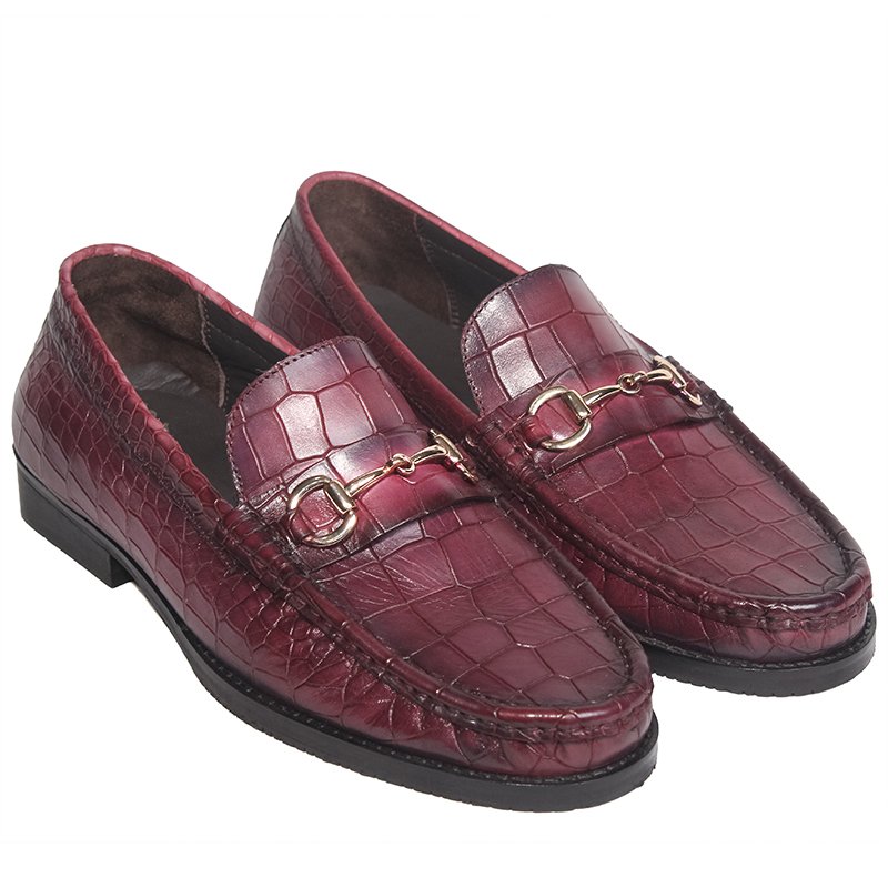 The Aurum Croc is a handcrafted luxury loafer by Shoe Bespoke, made from premium calf leather with an elegant croc-embossed texture. Finished in a refined light wine shade and paired with a genuine leather sole, this bespoke design delivers timeless sophistication with a bold edge.