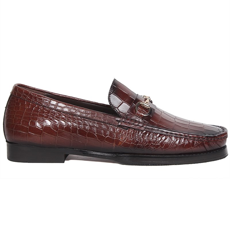 A handcrafted brown calf leather loafer with an elegant croc-textured finish and leather sole — designed for refined luxury and timeless bespoke style.