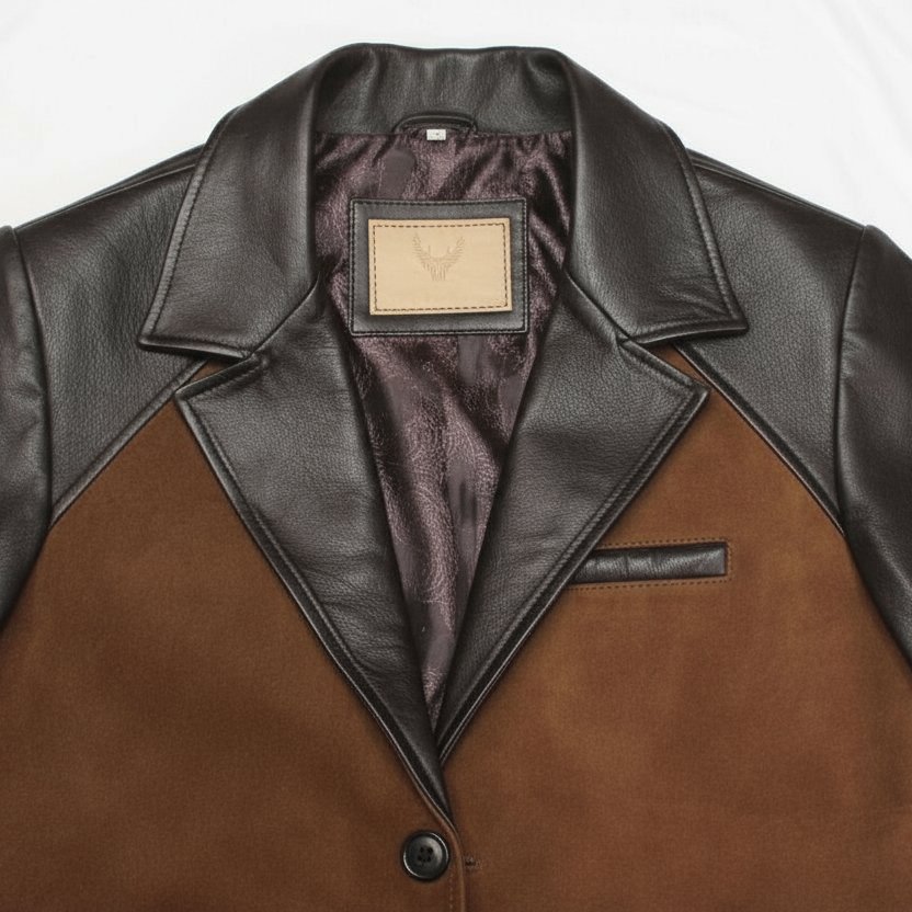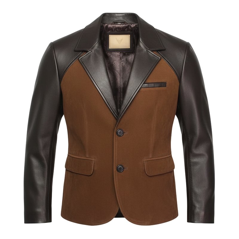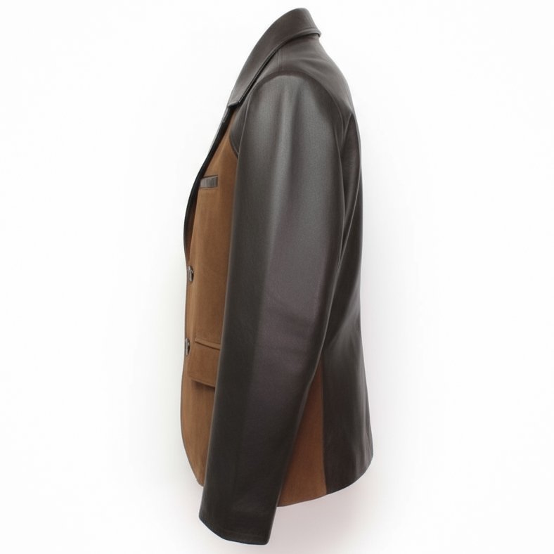 Embrace timeless elegance with The Heritage Duo-Tone Blazer—a masterfully crafted pure leather coat that elevates sophistication to new heights. Constructed from premium black leather and warm cognac suede, this luxury blazer represents the pinnacle of artisanal craftsmanship and contemporary design. Its seamless blend of butter-soft leather sleeves with plush suede front panels creates an eye-catching harmony that resonates with those who value exceptional tailoring.