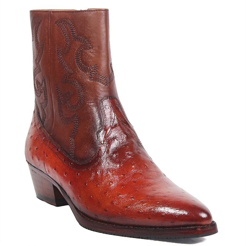 The boot features genuine ostrich leather accents, known for their distinctive texture and durability. Every pair is individually handcrafted, ensuring precise construction, elegant proportions, and a bespoke finish that sets it apart from mass-produced footwear.