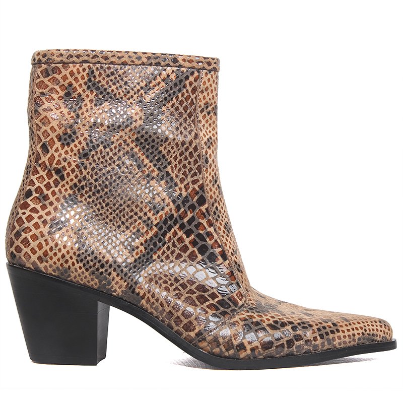 A bold expression of sophistication. Handcrafted from premium python-pattern patent leather with a pure leather sole, Viperra boots are designed for women who embrace distinctive luxury.
