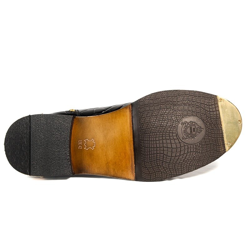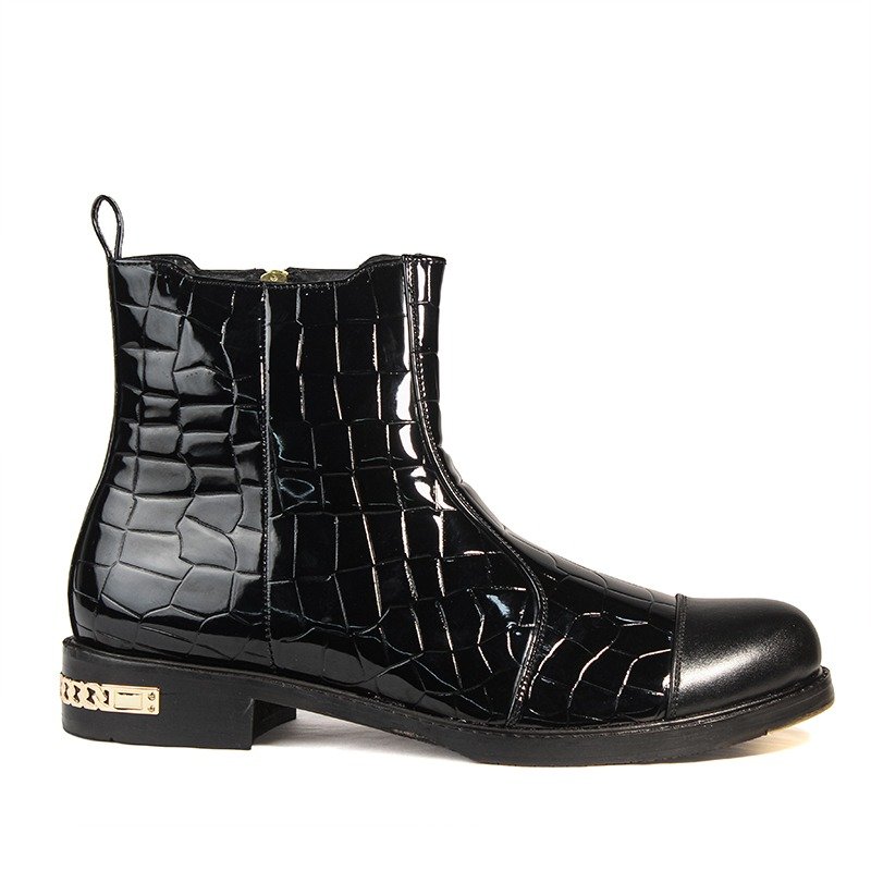 Designed to stand out, the boot is enhanced with metal detailing on the front toe and back, adding a sharp, edgy character. The side zip closure ensures ease of wear, while the high-quality leather sole provides durability and a smooth walking experience.